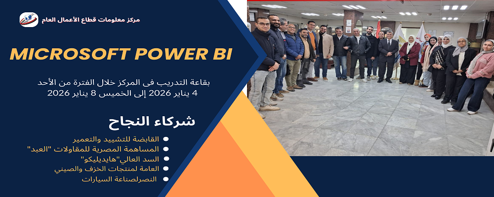 تنفيذ البرنامج التدريبى "Power Bi" لمجموعة من العاملين بشركات قطاع الأعمال العام.